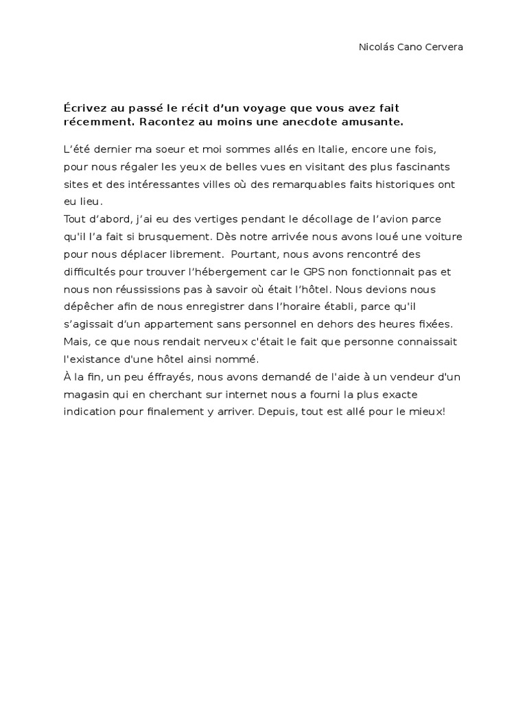 Exemple De Rédaction Sur Un Voyage. Exemple de rédaction sur un voyage exemple de rédaction sur un voyage c'est un petit camping tranquille, très convivial et sympathique. Nous avons volé à amsterdam en hollande, et nous avons visité la ville en vélo et à pied. A post shared by gabrielle narcy 邏 (@gabrielle.narcy) on jun 4, 2018 at 9:15am pdt. La veille de ce jour, j'étais trop heureux pour que je puisse dormir, je préparais tout ce dont j'aurais besoin. Le lendemain, pris de remords, vous décidez d'écrire à vos parents pour les rassurer, leur faire part de vos raisons et raconter votre voyage. Rédiger trois textes d'une quinzaine de lignes chacun pour accompagner le carnet de voyage (réalisé en arts plastiques).
